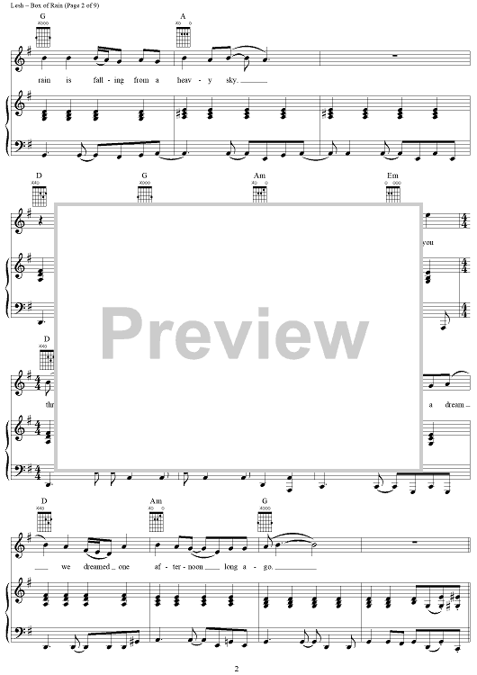 Box Of Rain Sheet Music Grateful Dead Guitar Chords Lyrics